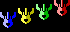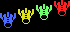 左右と下向きの3種類の人型のキャラクターを作りました。同じキャラクターに複数のパターンを割り当てるのはこれが初めてでした。 |