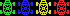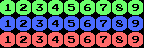 | 3色9種類の数字ブロックです。プログラム上,数字のパターンジェネレータテーブルのデータをスプライトデータなどに流用するといった隠し技が使われています。この絵をみるとトランプゲームのようで面白いです。 |